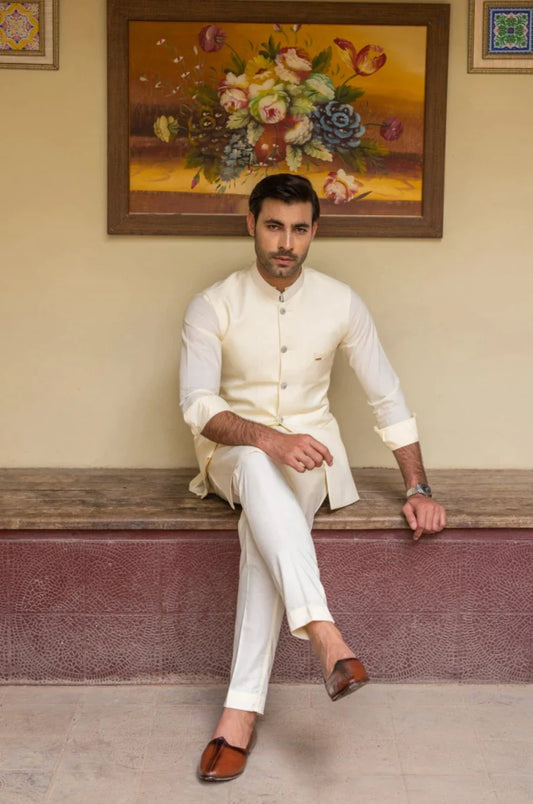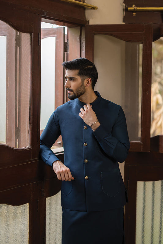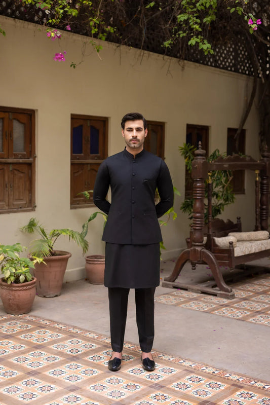 Black Velvet Waistcoat with Gold Embroidery Pathani Kurta Set