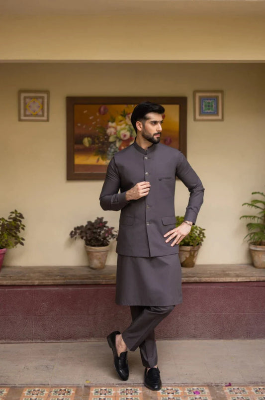 Grey Waistcoat with Kurta Pajama