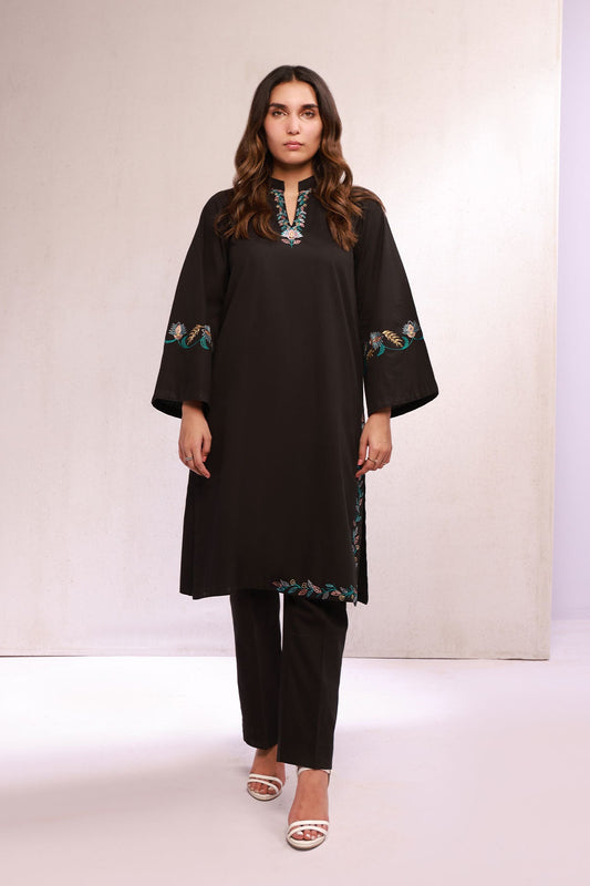 Men’s Midnight Charcoal Short Kurta & Wide-Leg Pajama