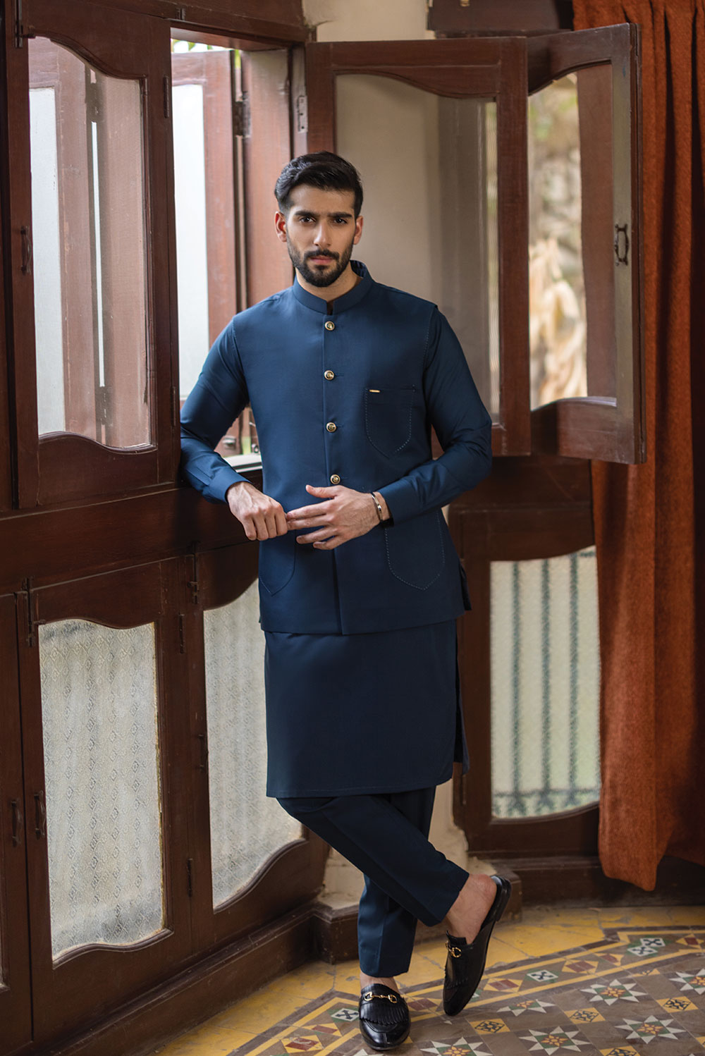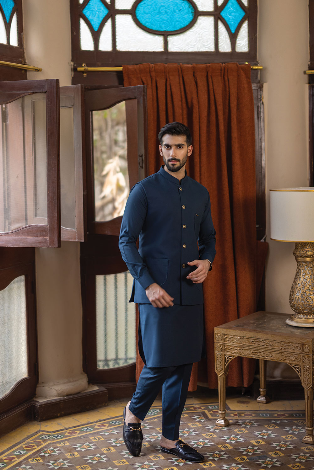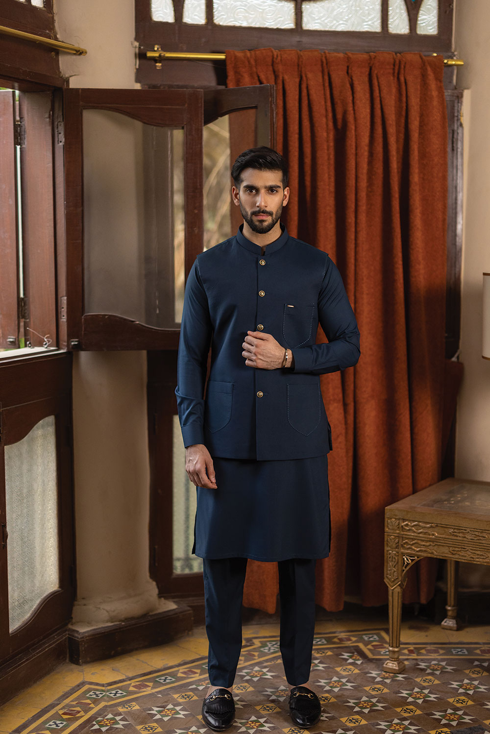 SKU: SKU: Blue Waistcoat with Kurta Pajama-S