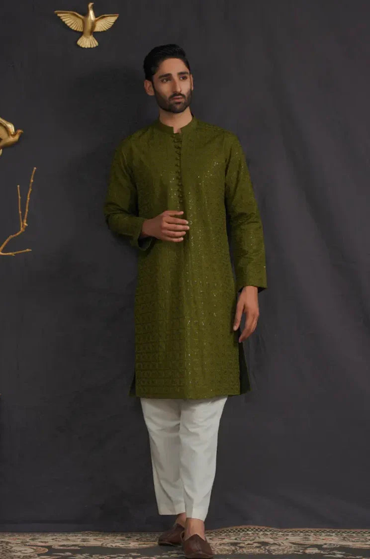 SKU: SKU: Green Sequins Kurta Pajama 2-S