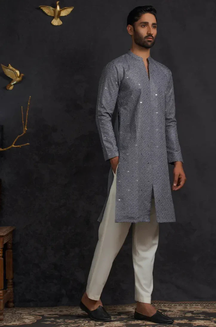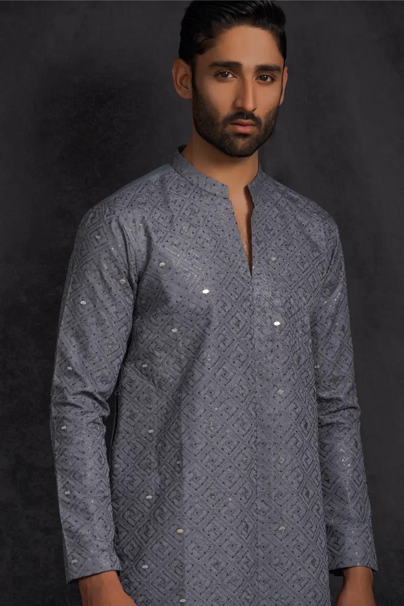 SKU: SKU: Grey Mirror Sequins Kurta Pajama 2-S