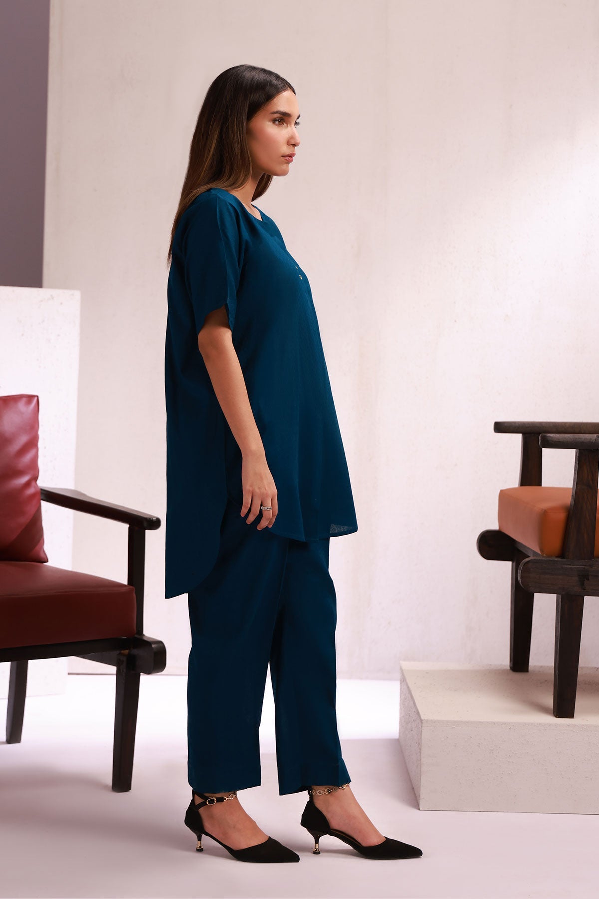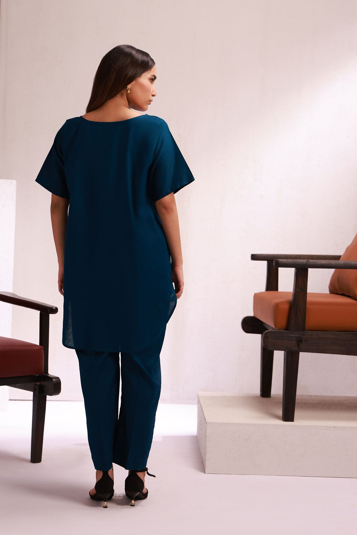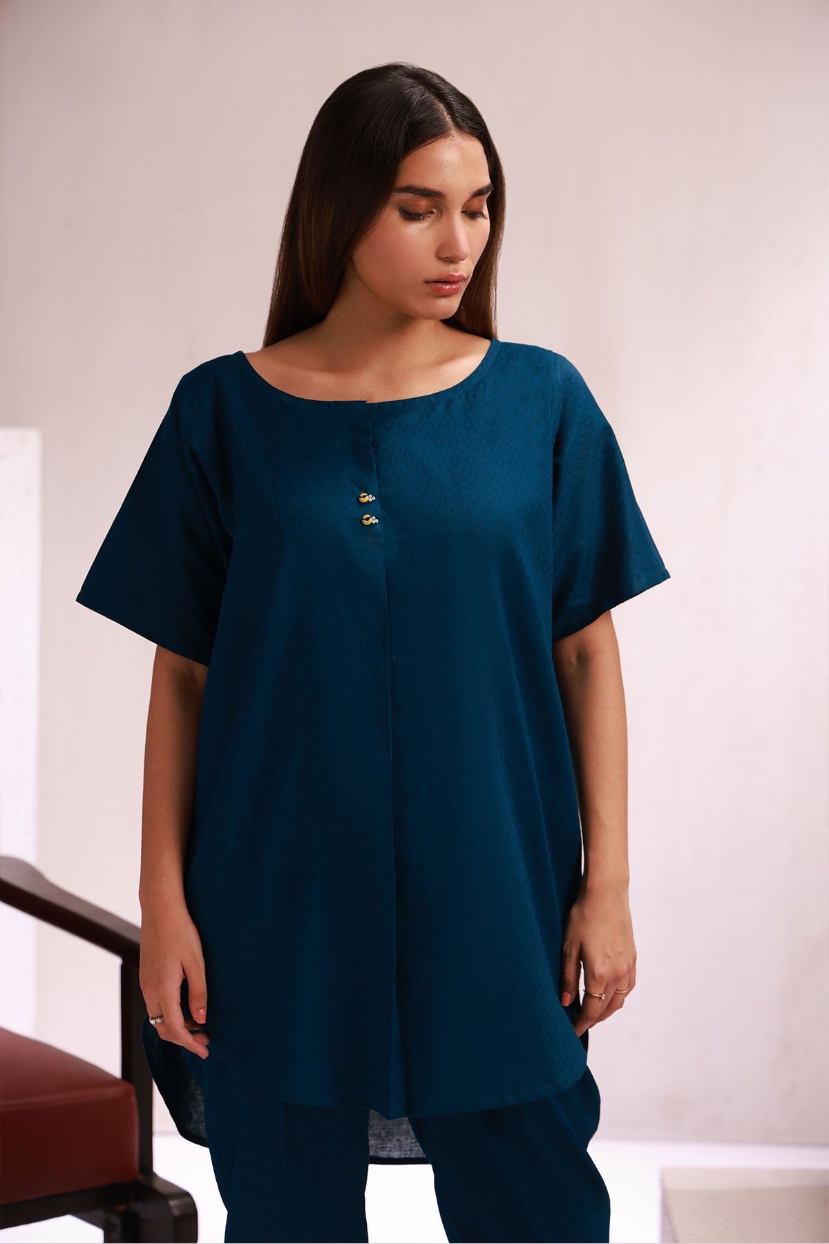 2PC TEAL COTTON JACQUARD SHIRT AND TROUSER