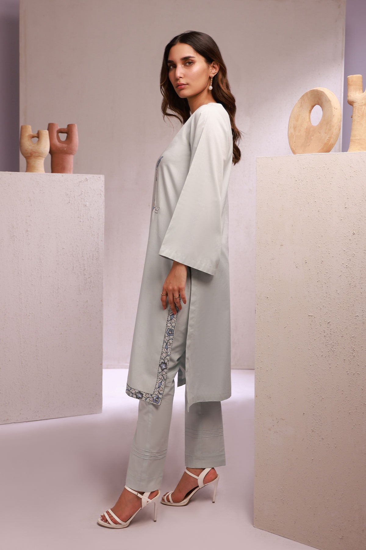 2PC ICE BLUE EMB SHIRT DYED TROUSER