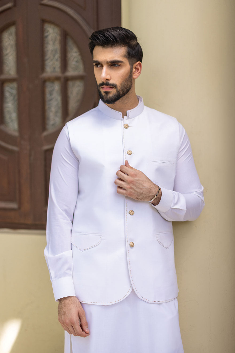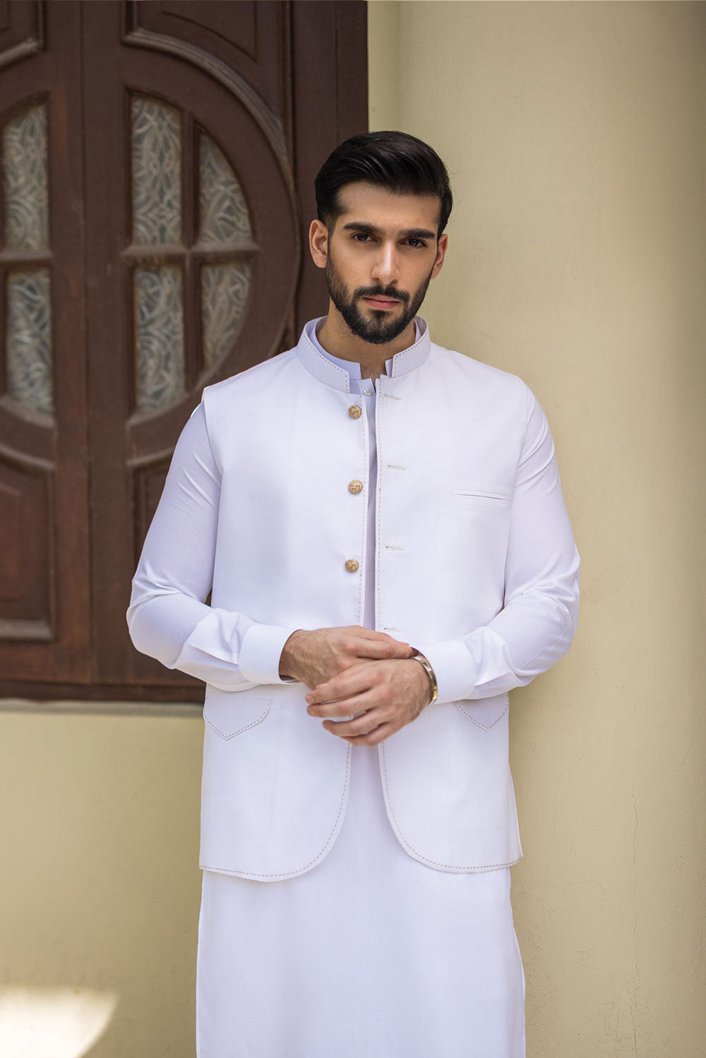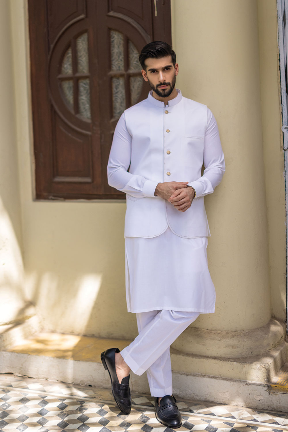 SKU: SKU: Pearl White Waistcoat with Kurta Pajama-S