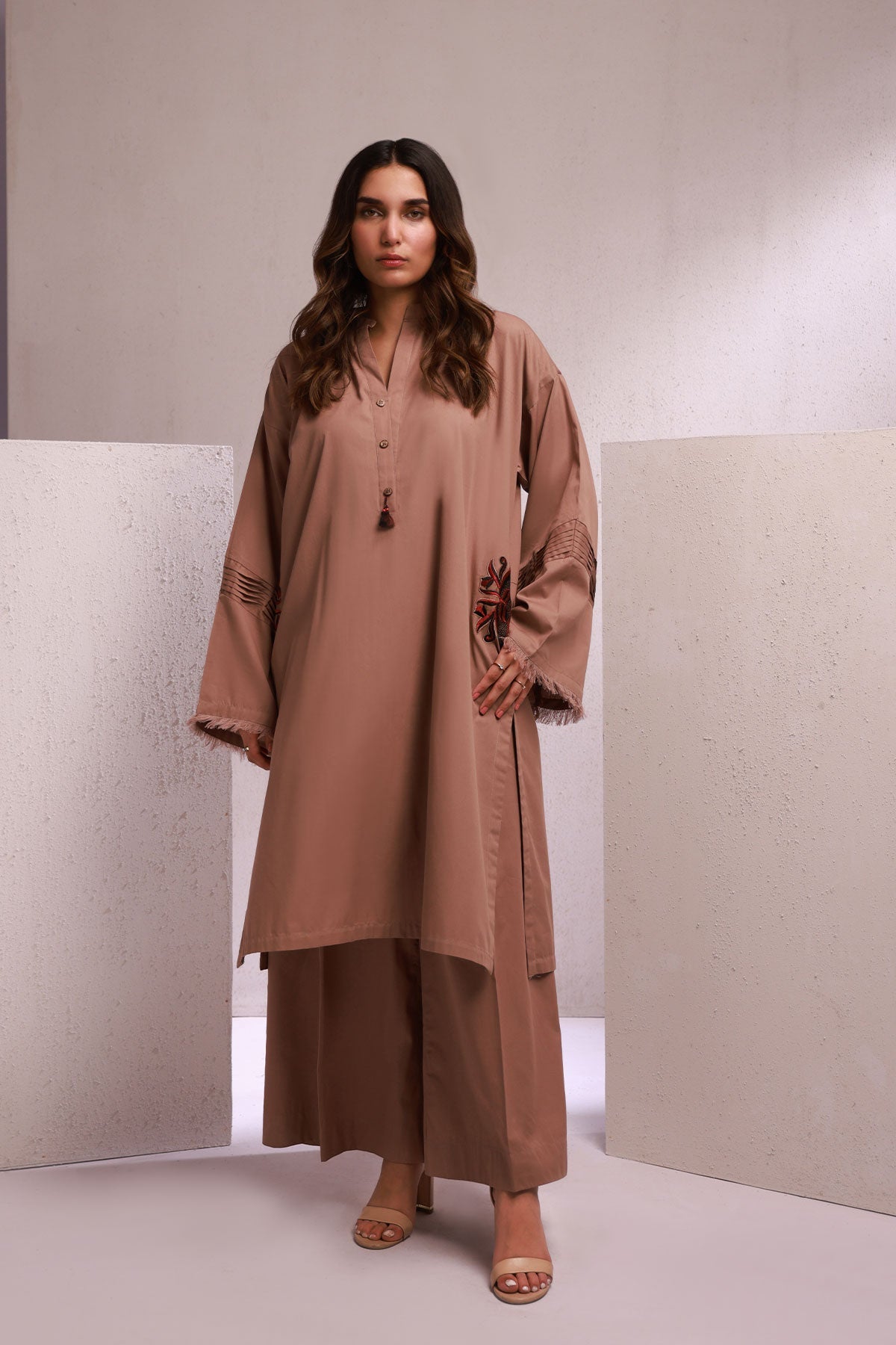 2PC BROWN EMB SHIRT DYED TROUSER
